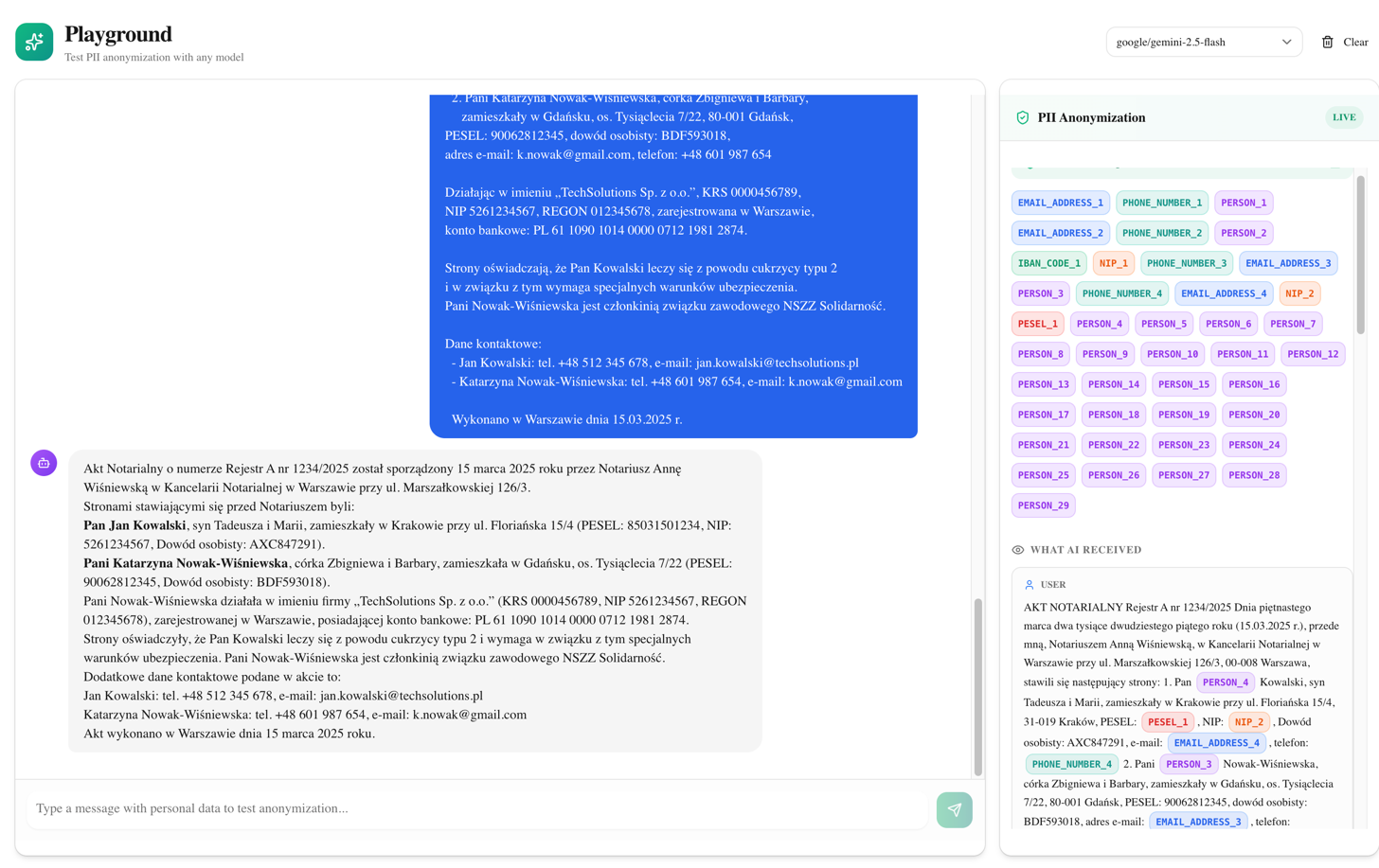 Playground pozwala Twoim klientom zweryfikować anonimizację na żywo.